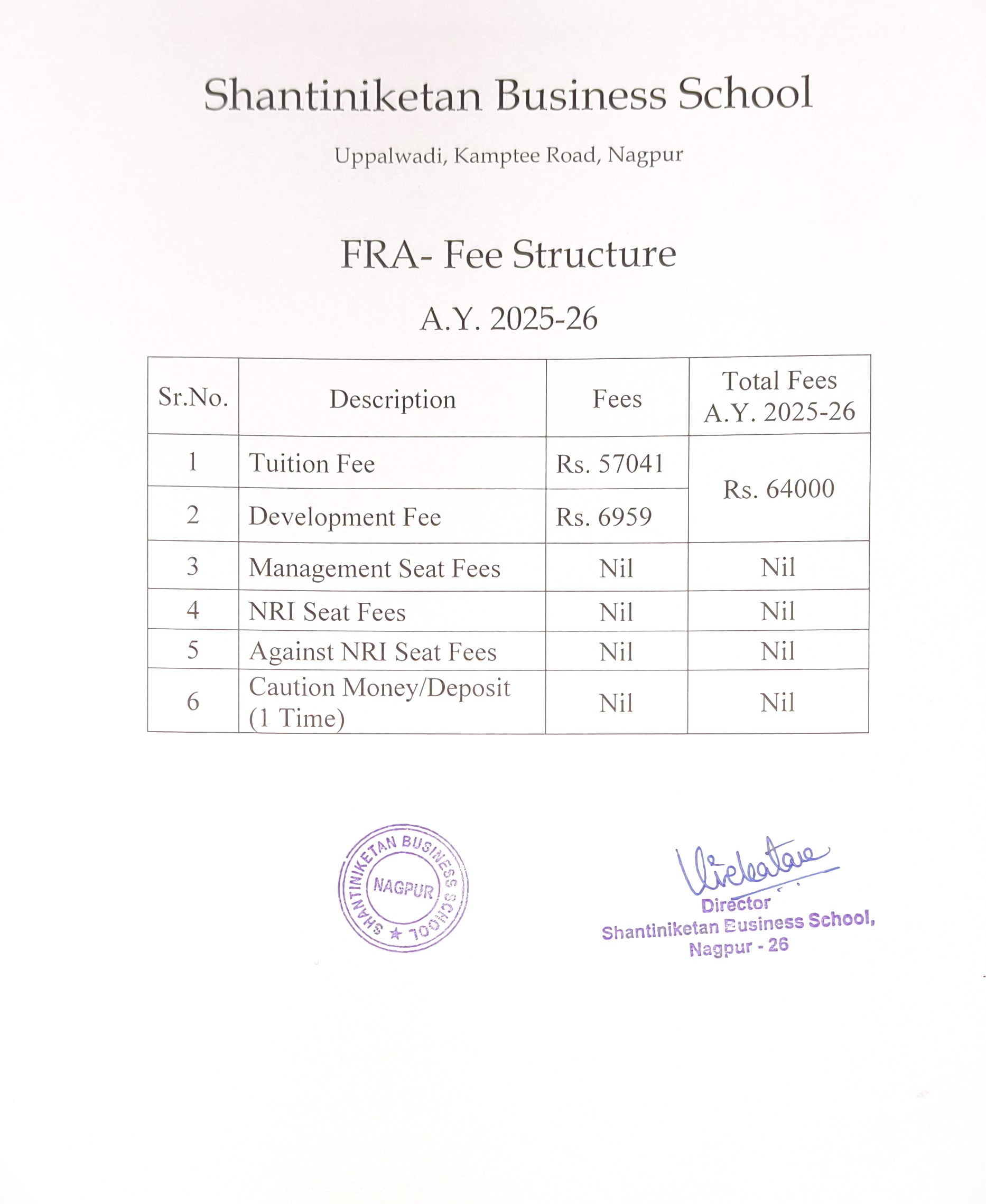 FRA Fee Structure 2025-26